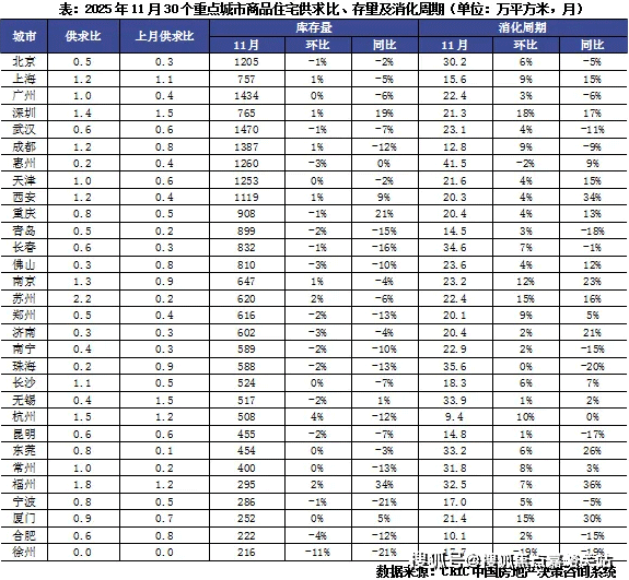 而30城11月全体供求比由上月的0.6增至0.82